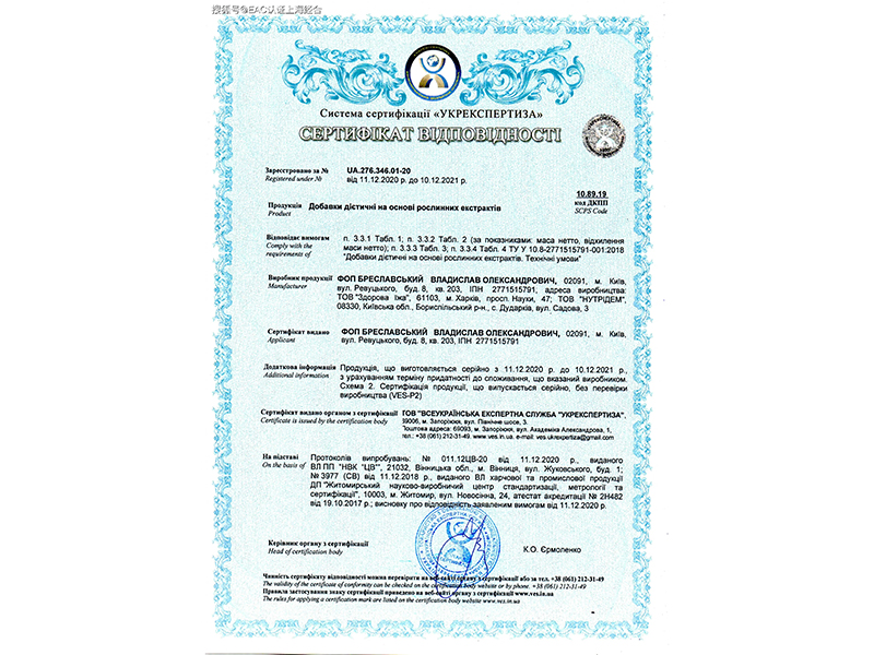 乌克兰认证证书样本